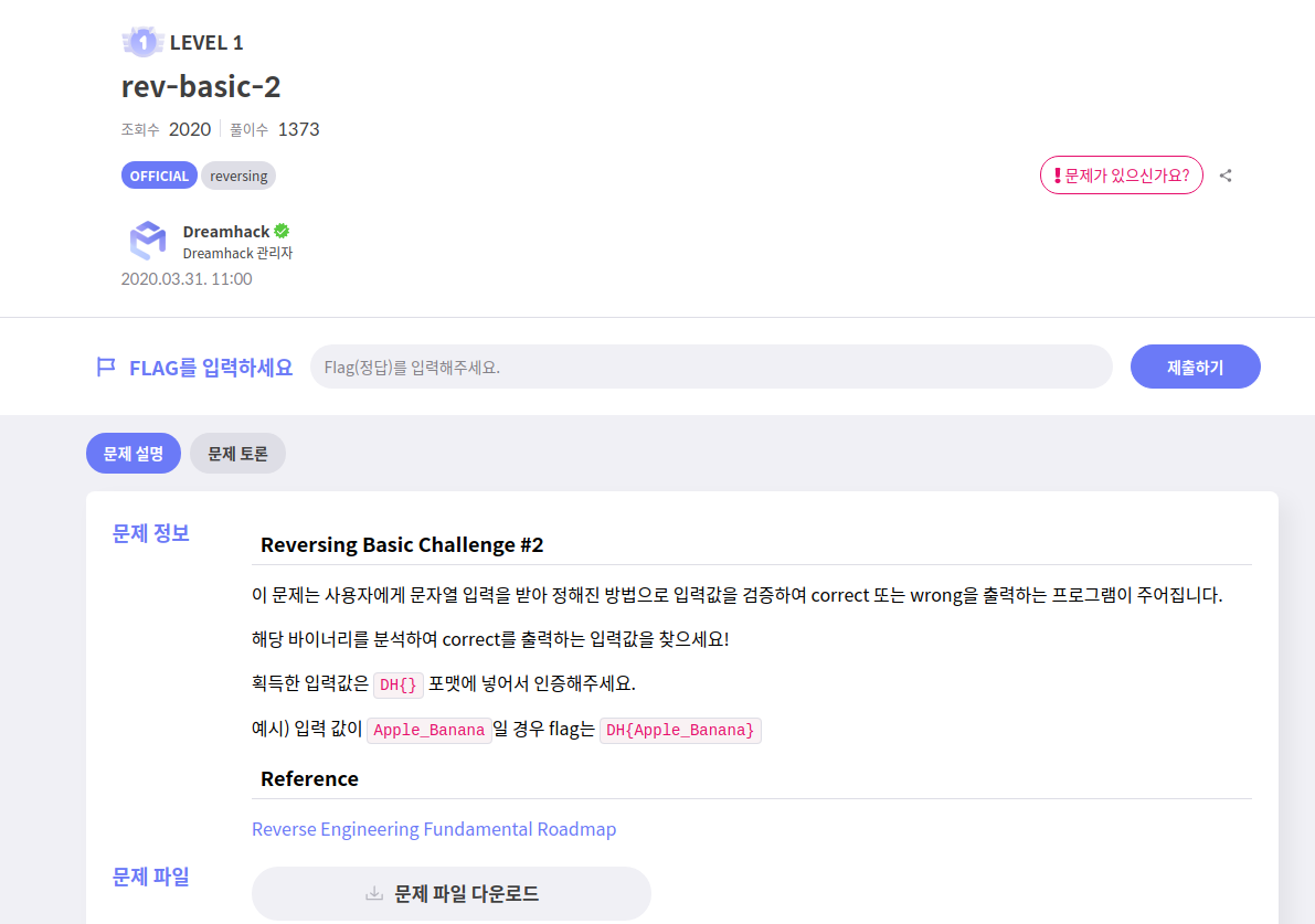 | [REV][Dreamhack] rev-basic-1 (0) | 2022.06.16 |